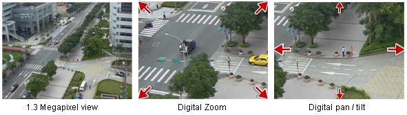 By simulating the PTZ operations, Digital PTZ allows users to move up / down / left / right after zoom-in on the monitoring view for more details checking. |